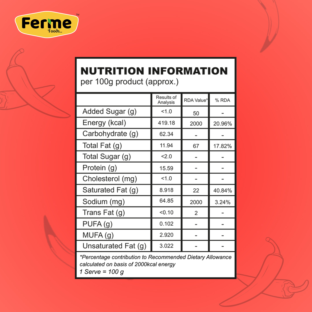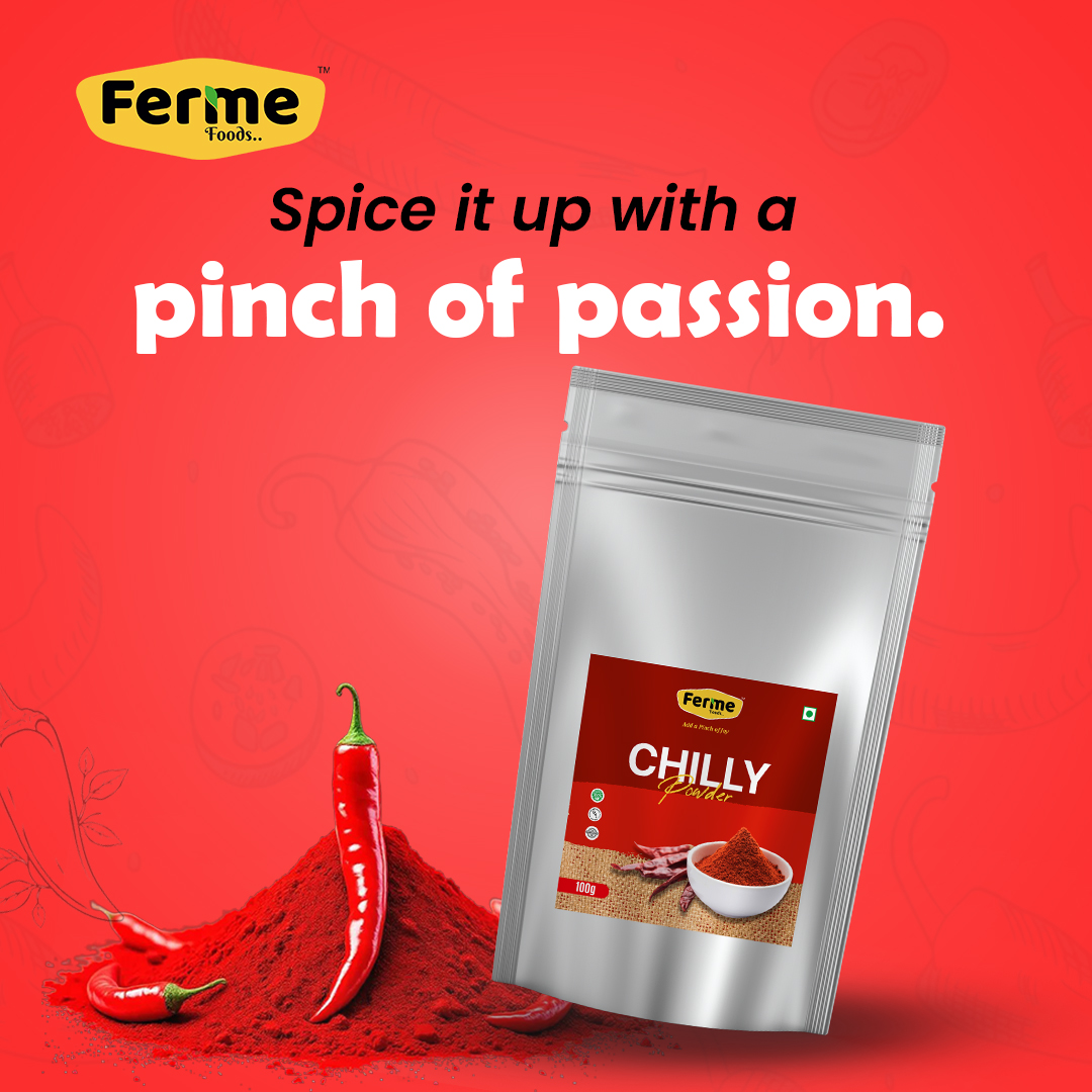 Ferme Chilli Powder is a bold and vibrant spice, made from the finest dried red chilies, carefully ground to deliver a fiery kick and deep red color to your dishes. Perfect for adding heat and flavor to curries, marinades, and sauces, Ferme Chilli Powder is 100% natural and free from additives, ensuring a pure and intense taste. Whether you’re looking to spice up your cooking or add a dash of color to your meals, Ferme Chilli Powder is your go-to choice for an authentic, flavorful experience.